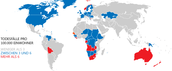 Weltweite Fälle von Hautkrebs